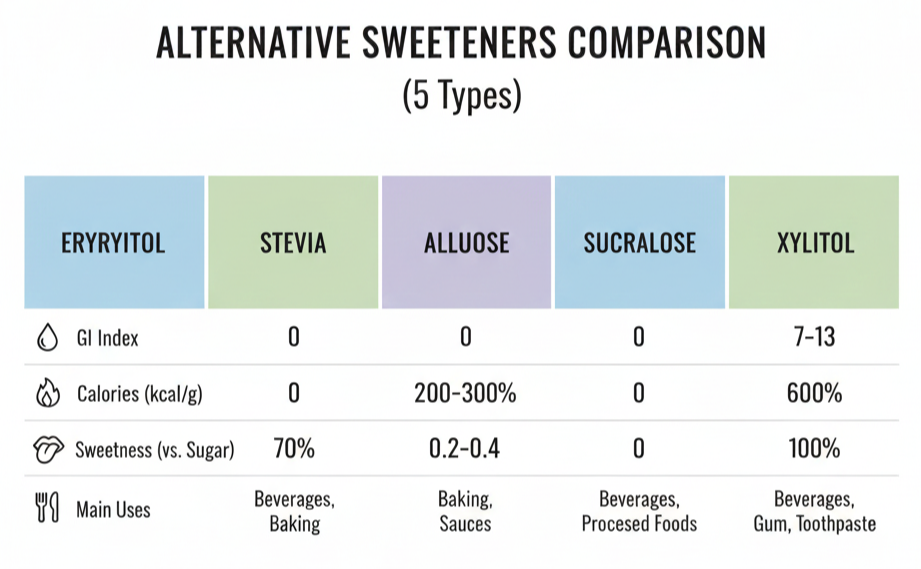 3. 심층 비교 분석: 건강하게 즐기는 5가지 대체 감미료