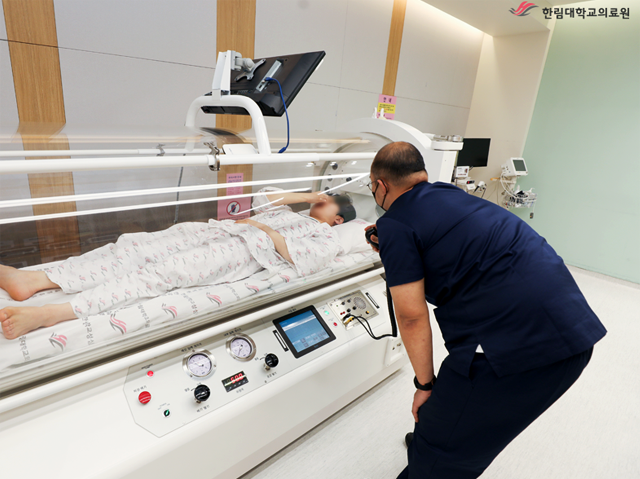 - 고압산소케어는 고농도 산소를 고압 상태에서 들이마시는 치료법입니다. 일반적으로 우리가 들이마시는 공기에는 약 21%의 산소가 포함되어 있지만, 고압산소케어에서는 100%에 가까운 산소를 일반 대기압의 두 배 수준에서 공급합니다. 이렇게 하면 평소 도달하기 어려운 미세혈관이나 손상된 조직 깊숙이 산소가 스며들어 세포 재생과 회복을 촉진합니다.