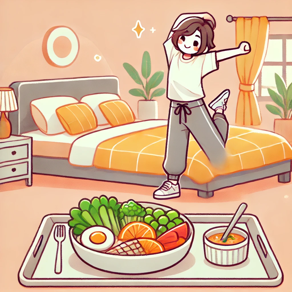 근육량이 많을수록 기초대사량이 높아지고, 에너지 순환이 원활해집니다. 또한 근력 운동은 성장호르몬 분비를 촉진해 수면 개선에도 도움을 줍니다. 헬스장에 가지 않아도, 스쿼트·플랭크·푸시업 등 맨몸 운동만으로도 충분히 효과를 볼 수 있습니다. - 스트레칭과 요가