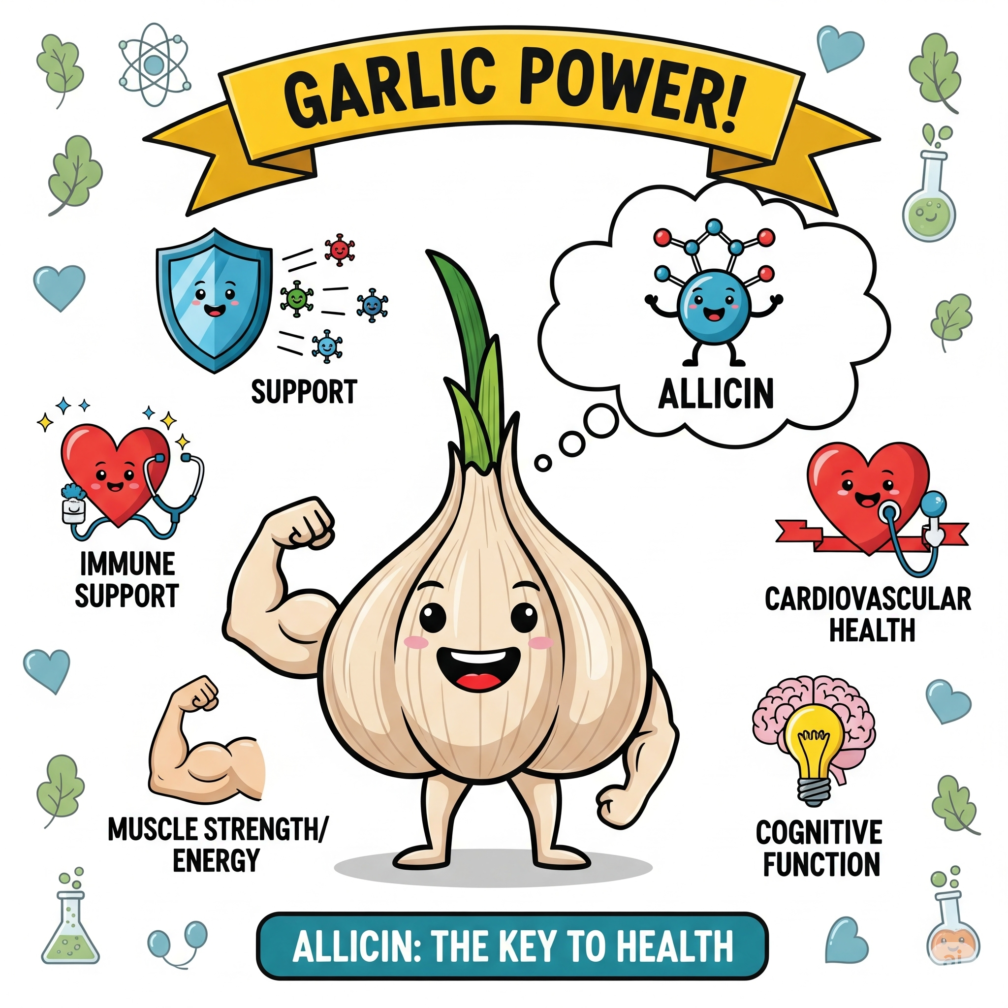 마늘 건강 효과를 대표하는 성분은 바로 ‘알리신’입니다. 알리신은 마늘을 다지거나 으깰 때 생성되는 황화합물로, 강력한 항균·항바이러스 작용을 합니다. 이는 세균과 바이러스의 세포벽을 파괴하거나 성장을 억제해 감염을 예방하고, 면역세포의 활동성을 높여 줍니다. 실제로 꾸준한 마늘 섭취는 감기 발병률과 회복 기간을 단축시킨다는 연구 결과도 있습니다.