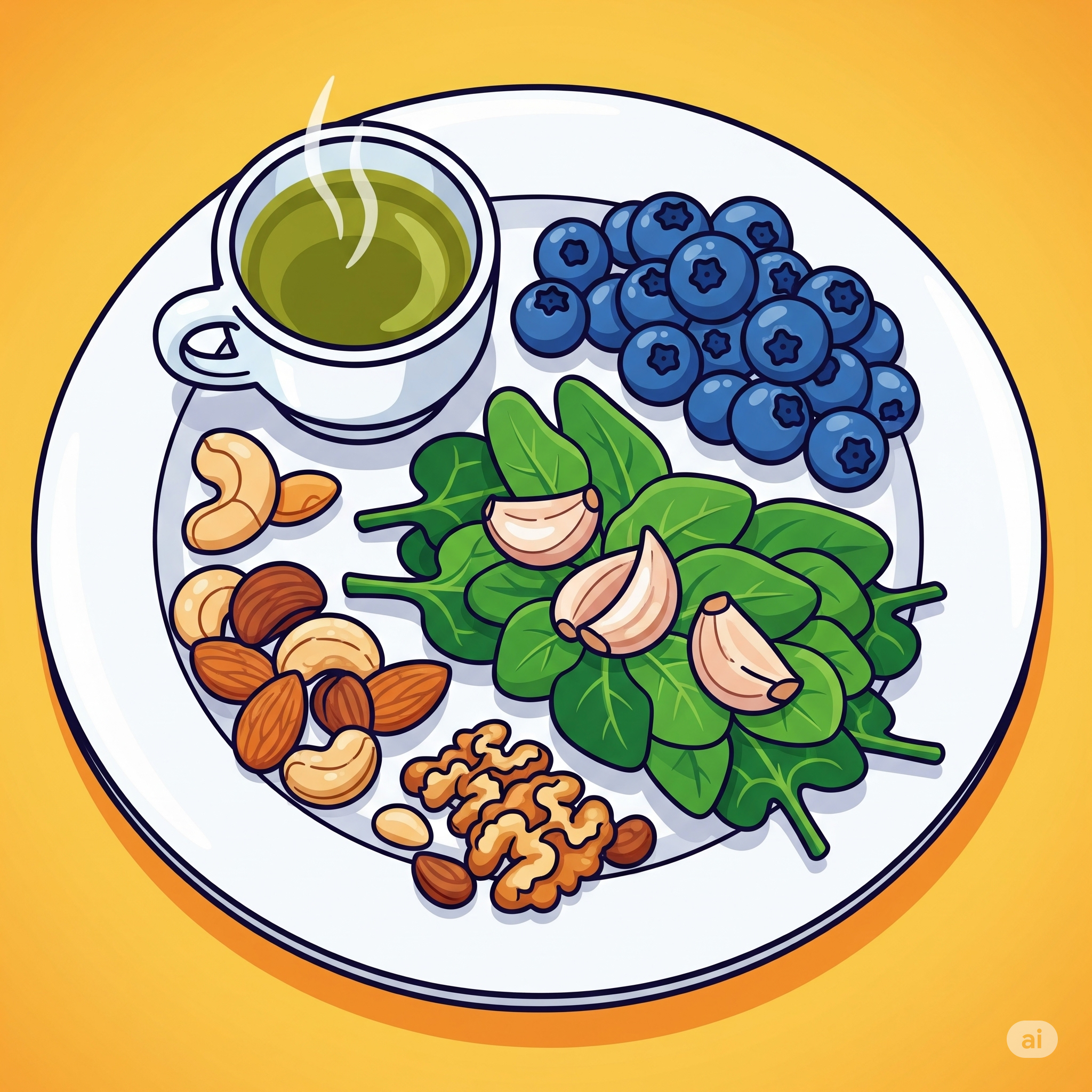 특히 아몬드, 호두, 브라질넛은 비타민 E와 오메가-3 지방산이 풍부하여 면역 반응 조절에 효과적입니다. 하루 한 줌(25~30g) 정도를 꾸준히 섭취하는 것이 좋습니다. - 녹차