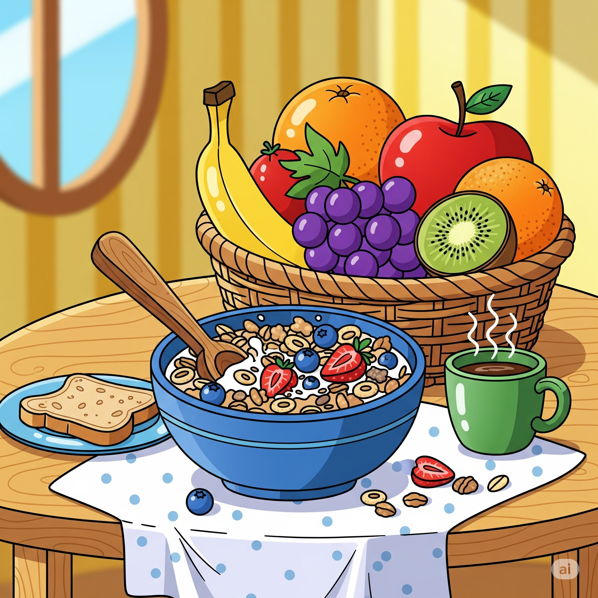 - 제철 과일(블루베리, 오렌지 등)과 통곡물 시리얼로 가벼운 아침 식사