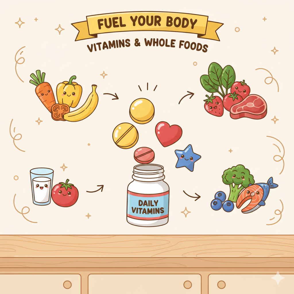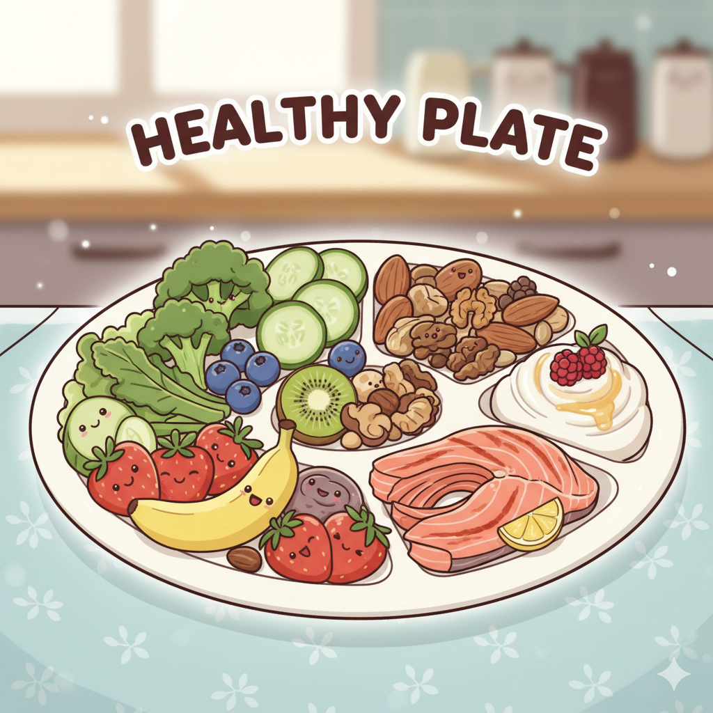 - 채소·과일 위주 건강 식단 관리 – 비타민·미네랄을 음식으로 고르게 섭취.