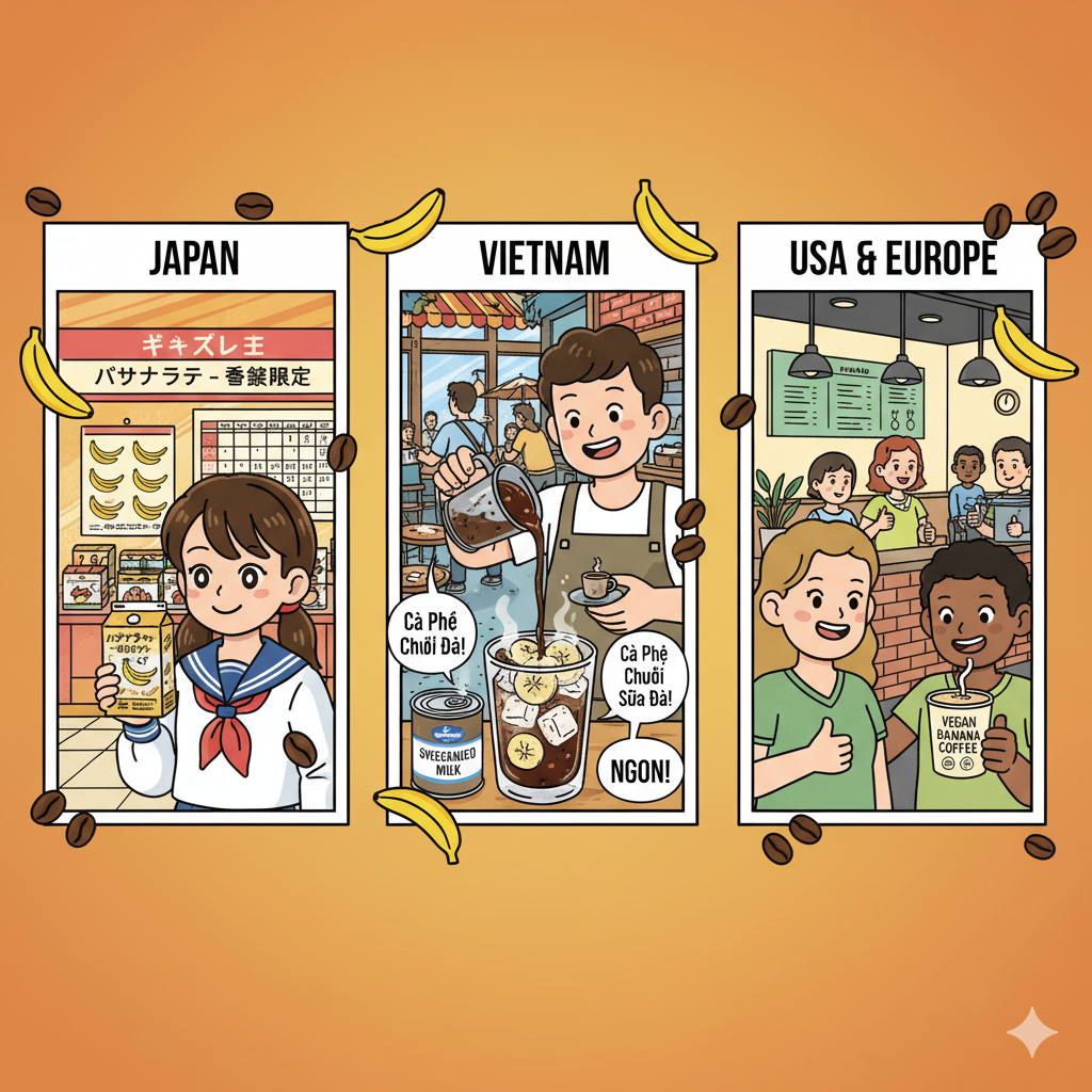 흥미로운 점은 바나나 커피가 특정 국가에 국한되지 않고, 각국에서 다양한 변주로 소개되고 있다는 점입니다. 베트남에서는 연유와 함께 달콤하게, 일본에서는 편의점식 ‘바나나 라떼’로, 미국과 유럽에서는 비건 우유(오트밀크·아몬드밀크)와 결합한 형태로 소비가 확산되고 있습니다. 이는 곧 바나나 커피 레시피가 단순한 레시피를 넘어, “각국의 식문화와 라이프스타일을 반영하는 글로벌 콘텐츠”로 발전했음을 보여줍니다.