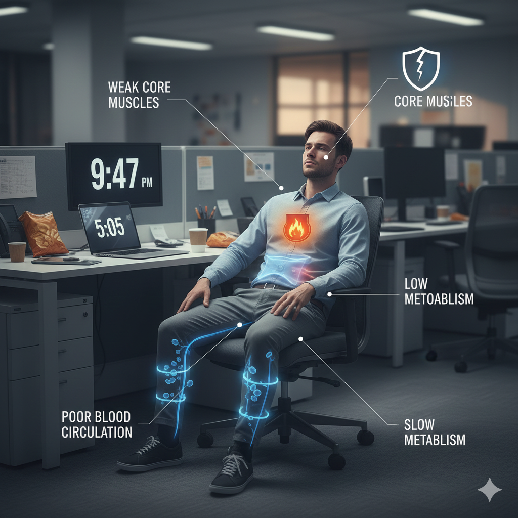 1.1. 현대인의 생활 습관과 뱃살의 상관관계 (장시간 앉아있는 자세)