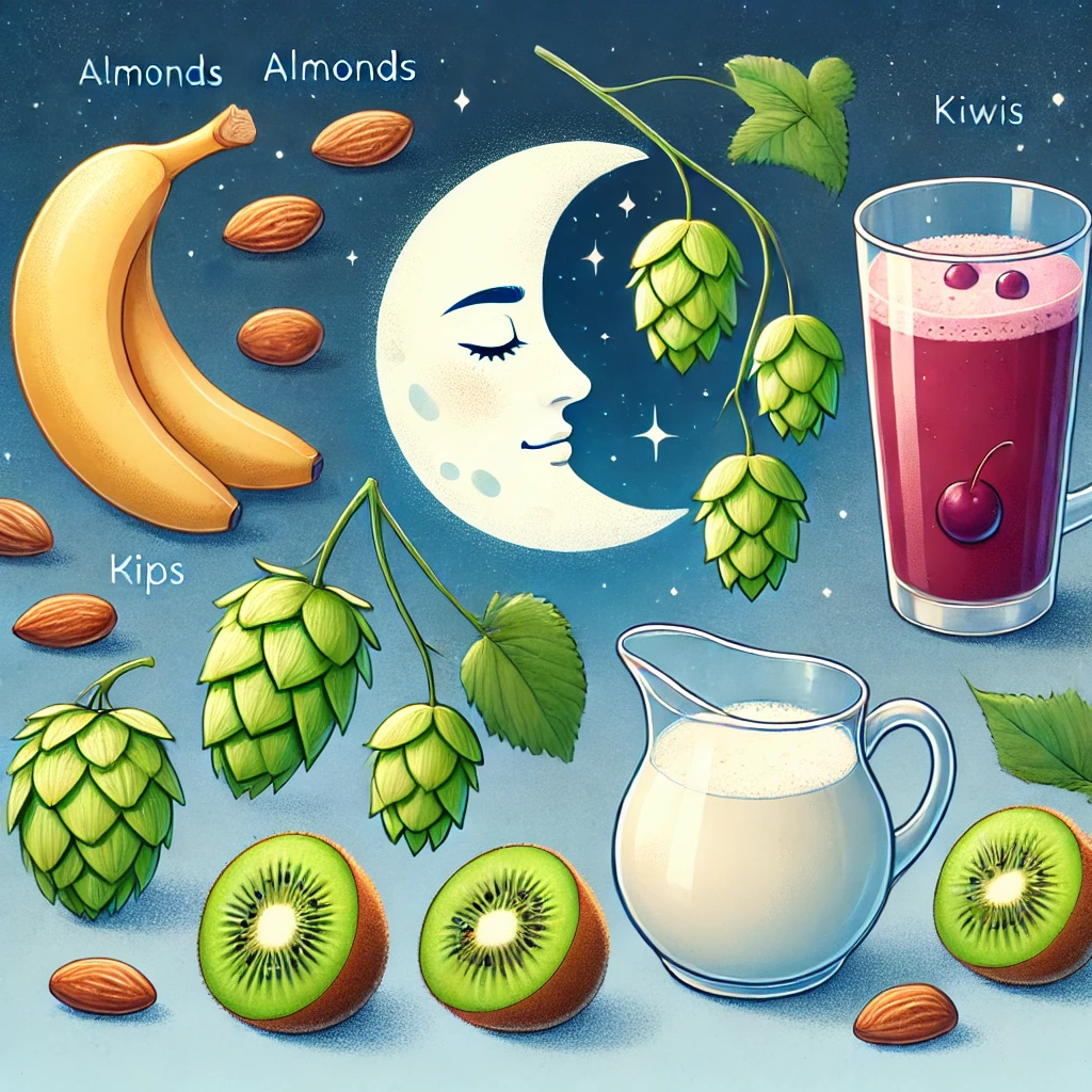 1. 숙면을 유도하는 천연 호르몬 식품: 아몬드, 바나나, 키위
