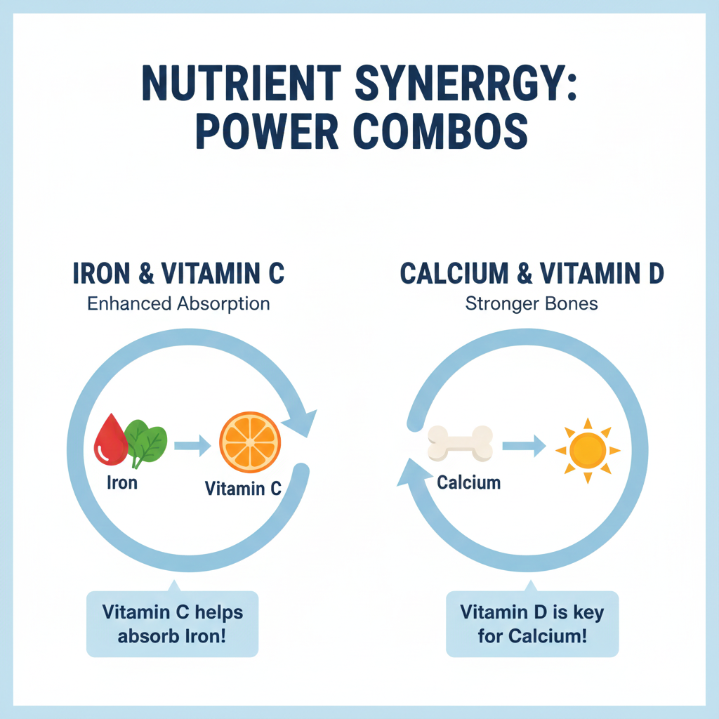 비싼 영양제, 그냥 물이랑만 드시나요? 비타민C와 철분, 칼슘과 비타민D 등 흡수율을 극대화하는 음식 궁합부터 독이 되는 최악의 조합까지 완벽 정리해 드립니다.