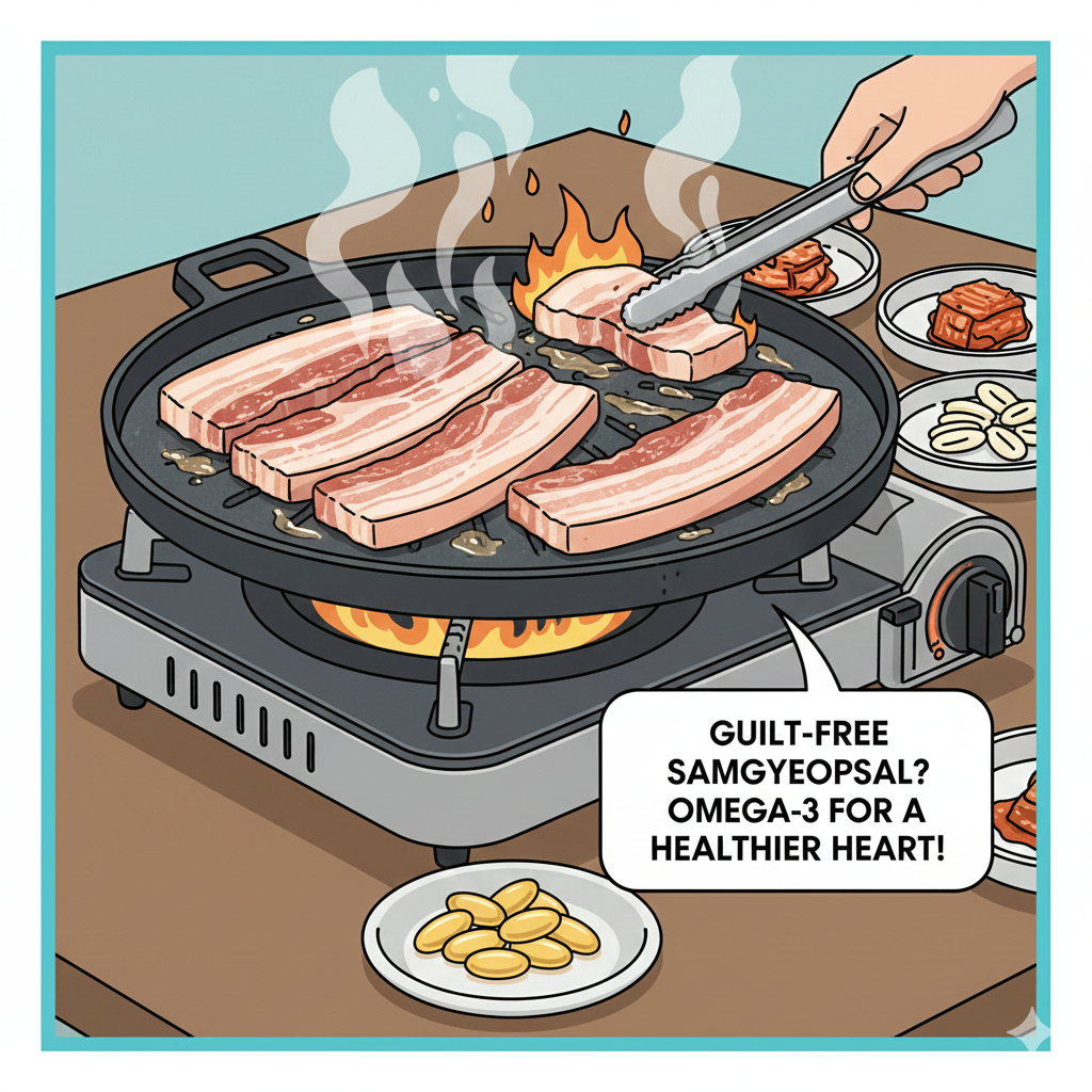 한국인의 외식 메뉴 부동의 1위는 단연 삼겹살입니다. 하지만 즐거운 식사 뒤에는 마음 한구석에 '지방 섭취'에 대한 걱정이 남기 마련이죠. 그런데 놀랍게도 삼겹살을 먹은 날이 오메가3의 효과를 극대화할 수 있는 최고의 타이밍이라는 사실, 알고 계셨나요?