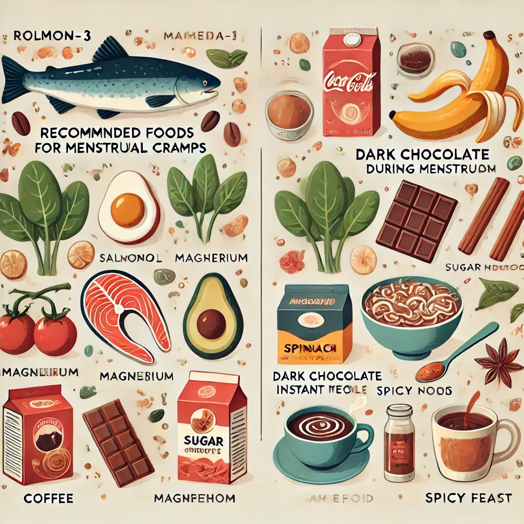 ✅ 2. 생리통 완화 음식 vs 피해야 할 음식
