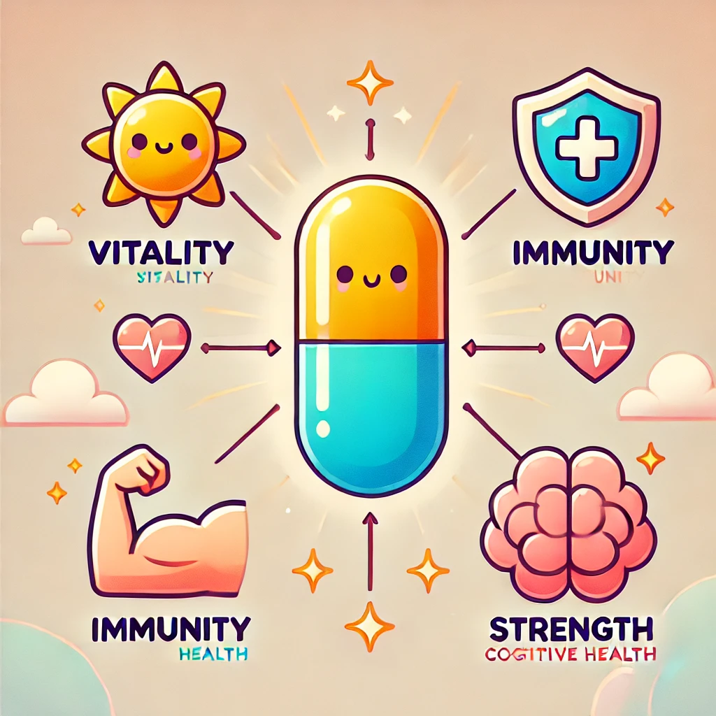 노년층은 면역력과 기억력 유지가 가장 중요한 과제입니다. 비타민 B12, 비타민 D, 오메가-3, 코엔자임Q10 등이 포함된 필수 영양소 보충이 필요합니다. 이 연령대는 삼킴이 불편할 수 있으므로 작은 캡슐이나 파우더형을 고르는 것도 좋습니다.