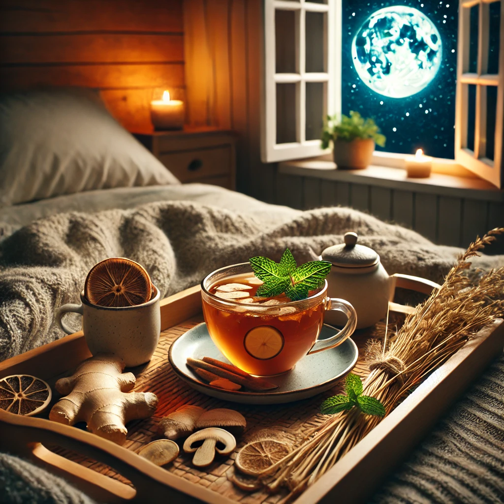 수면 부족이나 피로로 고생하고 계신가요? 생강, 영지버섯, 페퍼민트, 귀리 짚이 어떻게 전통적인 지혜와 과학의 뒷받침으로 자연스러운 수면의 질을 지원하고 스트레스를 줄이며 전신 회복을 촉진하는지 알아보세요