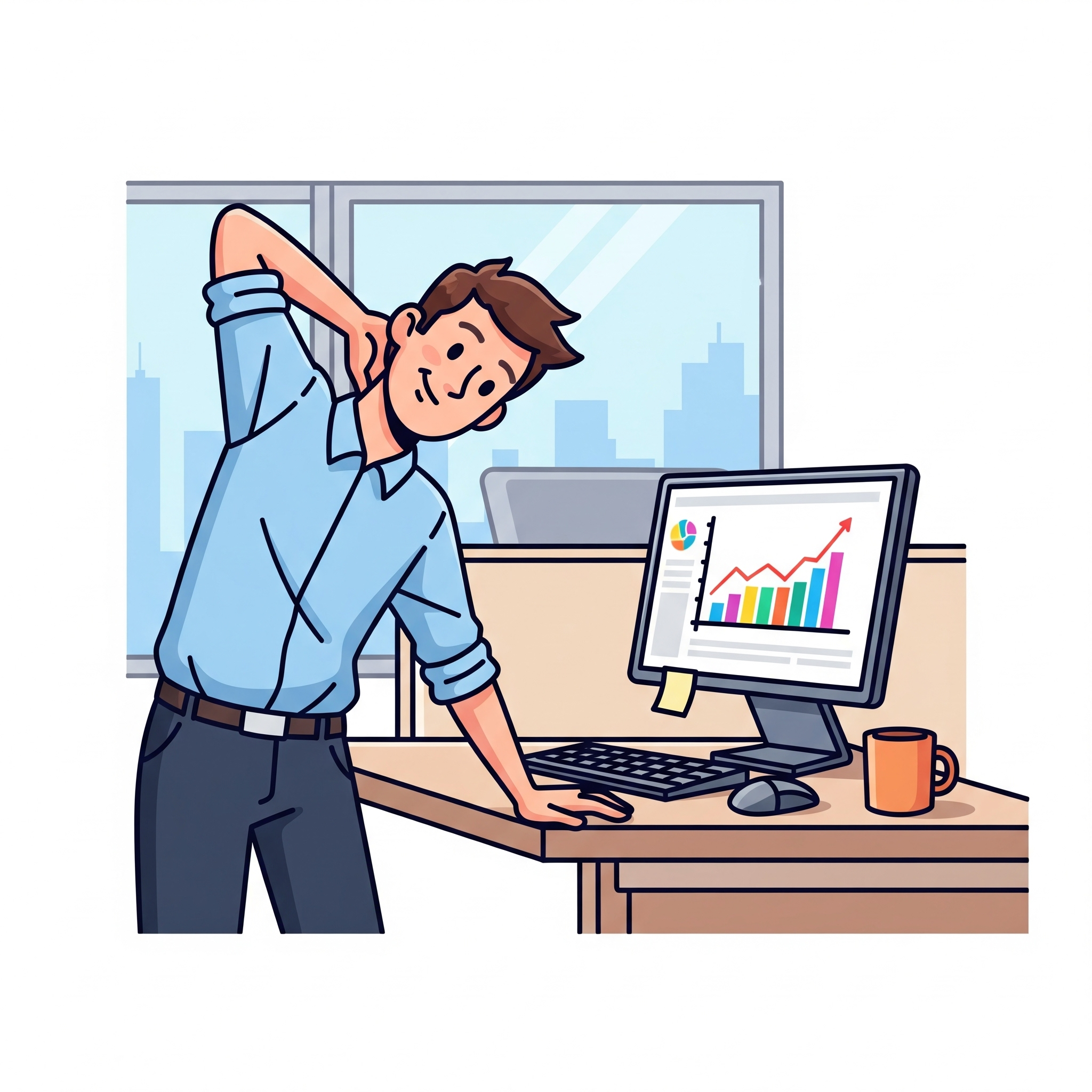 오전 9시부터 오후 6시까지, 하루 대부분을 책상 앞에서 보내는 직장인들에게 스트레칭은 단순한 운동 이상의 의미를 가집니다. 반복되는 업무, 고정된 자세, 화면을 응시하는 눈… 이 모든 요소는 근골격계 통증, 거북목, 허리 통증, 어깨 결림의 원인이 되기 쉽습니다. 특히 최근 들어 많은 직장인들이 사무실 스트레칭에 관심을 갖게 된 이유는 '운동은 하고 싶지만 시간이 없다'는 현실적인 고민에서 비롯됩니다.