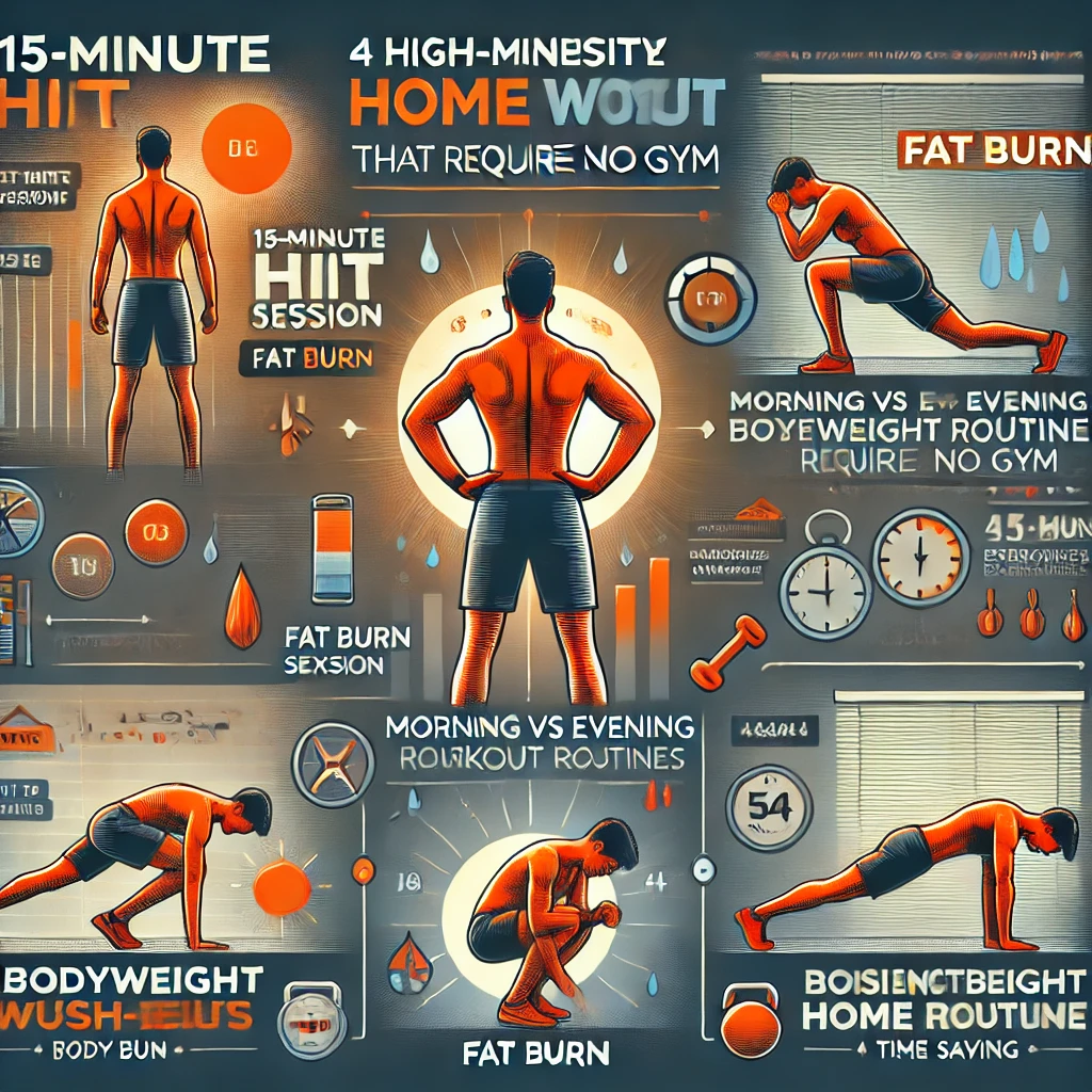 헬스장 없이도 가능한 20대 고강도 전신 운동 루틴 4가지를 소개합니다. 15분 HIIT, 아침/저녁 루틴 비교, 맨몸 운동 vs 기구 운동 효과 분석 등 체지방 감량과 운동 시간 효율을 높이는 홈트레이닝 방법을 알아보세요.