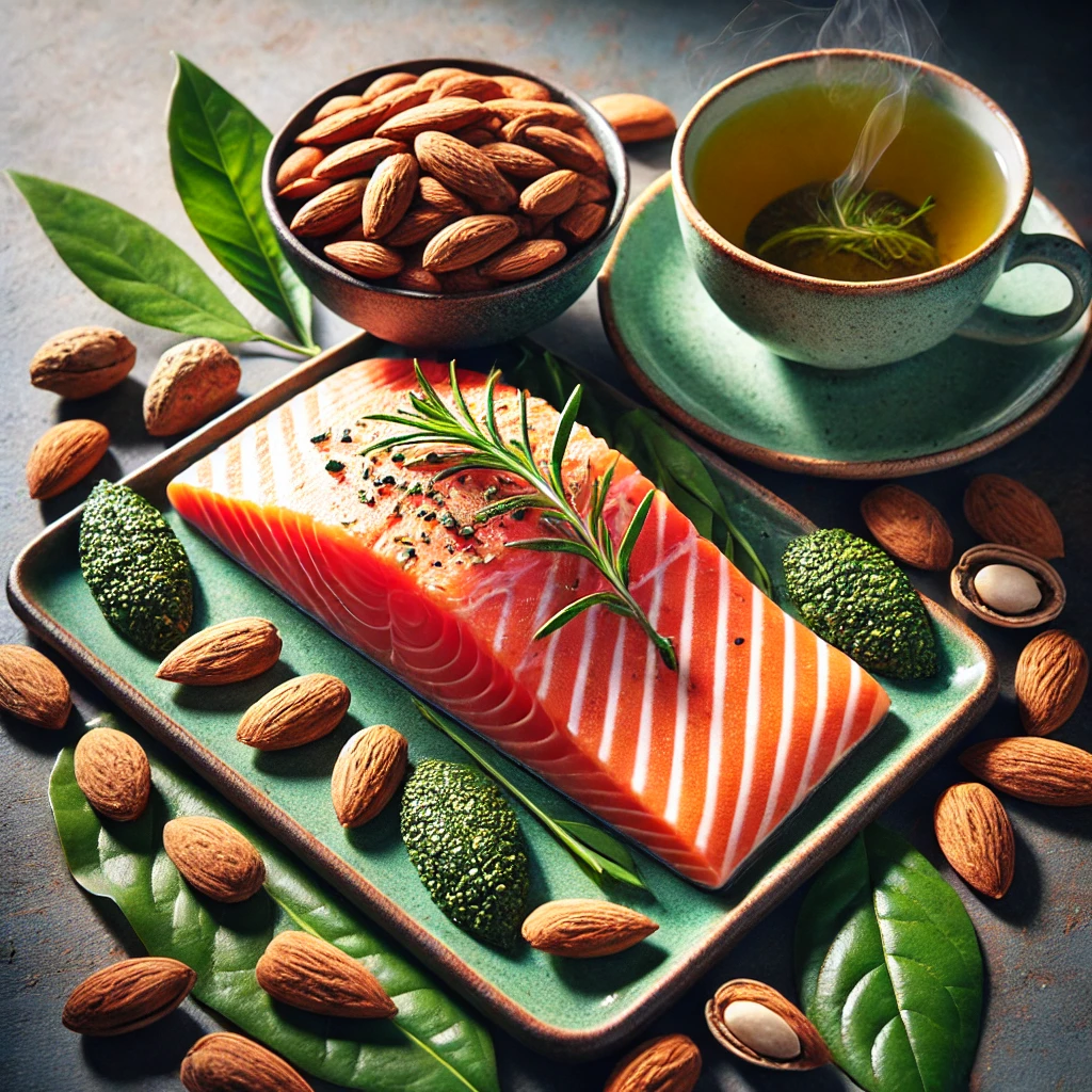 연어는 오메가-3 지방산과 단백질이 풍부하여, 피부 세포의 재생을 돕고, 피부 염증을 줄이는 데 효과적입니다. 또한, 연어의 비타민 D는 피부 탄력을 유지하는 데 중요한 역할을 합니다. 연어 스테이크나 연어 샐러드로 섭취할 수 있습니다.