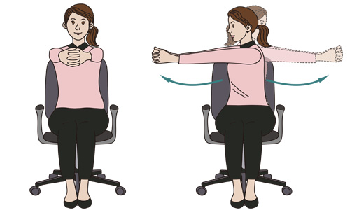 - 의자에 앉아 상체를 좌우로 천천히 돌리며 15초 유지