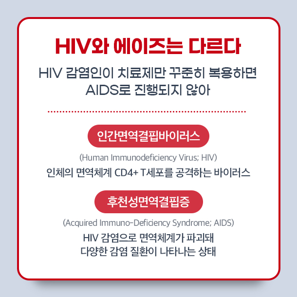 HIV 감염자는 겉으로 드러나는 증상이 없더라도 타인에게 바이러스를 전파할 수 있으며, 치료하지 않으면 8~10년 무증상기를 지나 에이즈(AIDS)로 진행됩니다.
