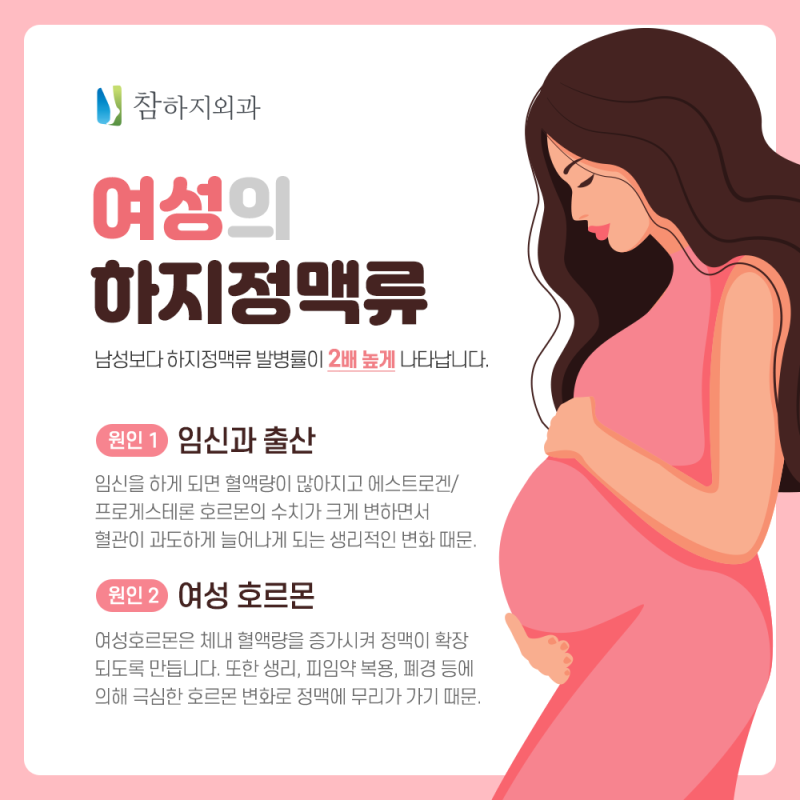 | 호르몬 변화 | 여성호르몬은 정맥벽 이완 유도 |
