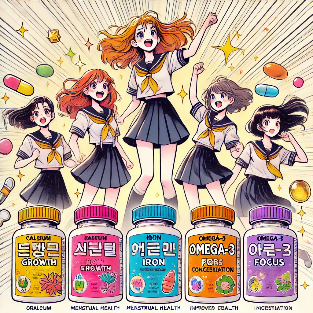 그럼 지금부터, 10대 여학생이 반드시 챙겨야 할 기초 건강보조제 6종을 자세히 설명해드릴게요.