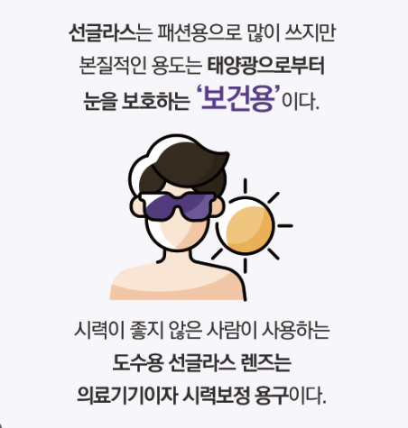 - 자외선 차단 외에도 블루라이트 차단 렌즈 활용 가능