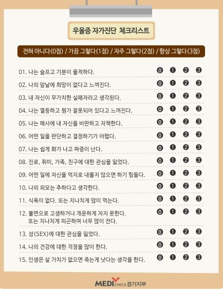 | 우울 체크 | 5개 이상 증상 2주 이상 지속 → 상담 권장 |