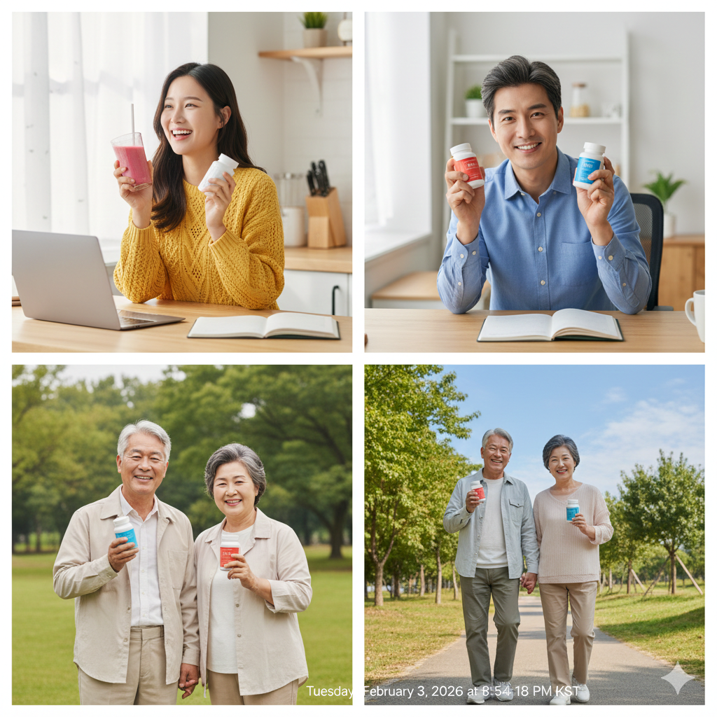 - 선택: 은행잎 추출물 (혈액순환, 인지 기능), 아스타잔틴 (강력한 항산화).