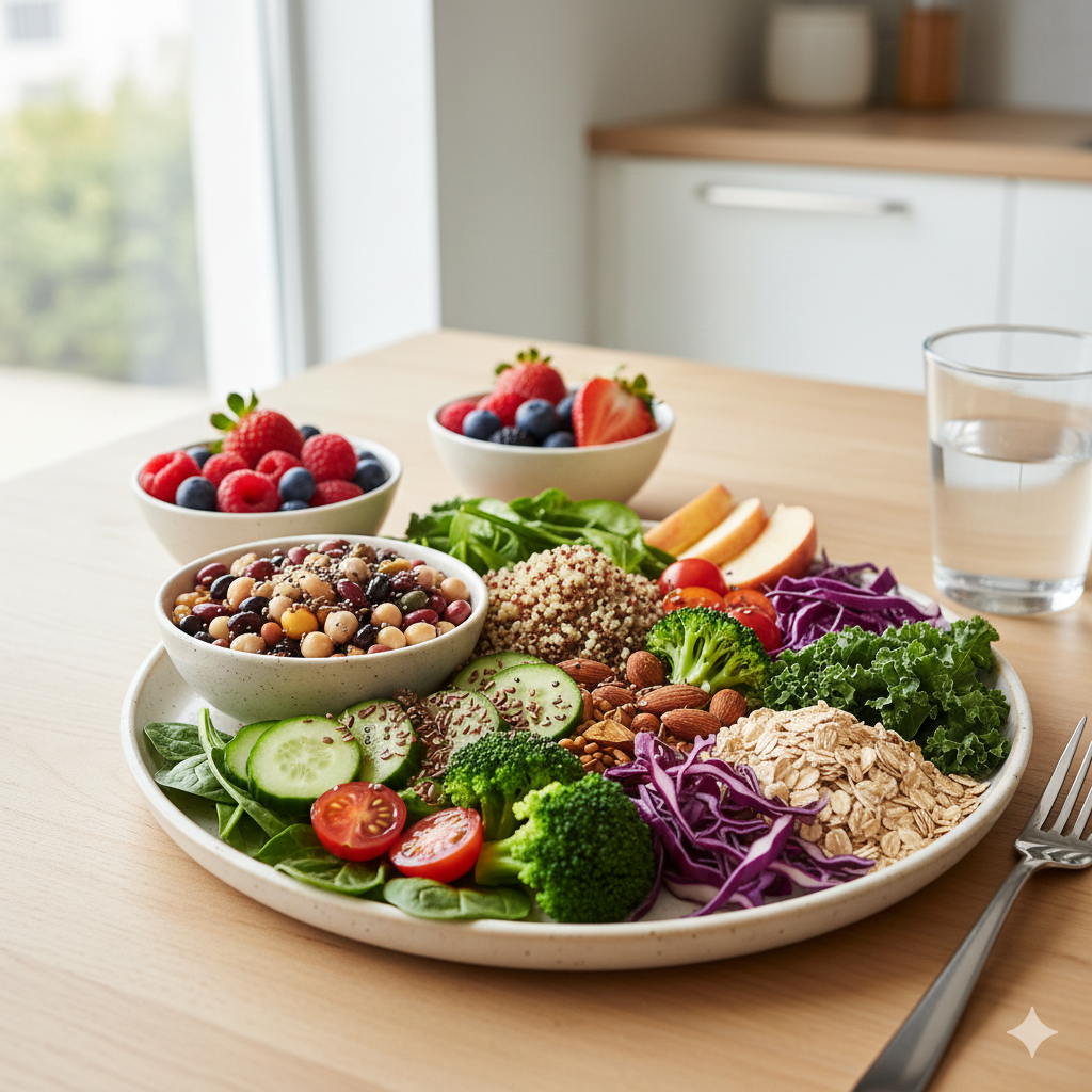 4.1 식이섬유의 중요성 (Longevity의 핵심) 식이섬유는 장내 발암물질을 흡착해 배출하는 '청소부' 역할을 합니다. 채소, 과일, 통곡물 섭취를 늘려야 합니다.
