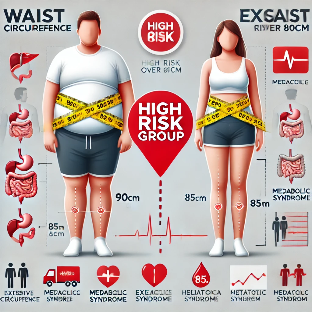 허리둘레 남성 90cm↑, 여성 85cm↑ = 고위험군 경고