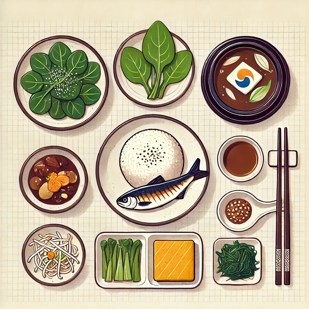 - 된장국, 나물 반찬 2가지
