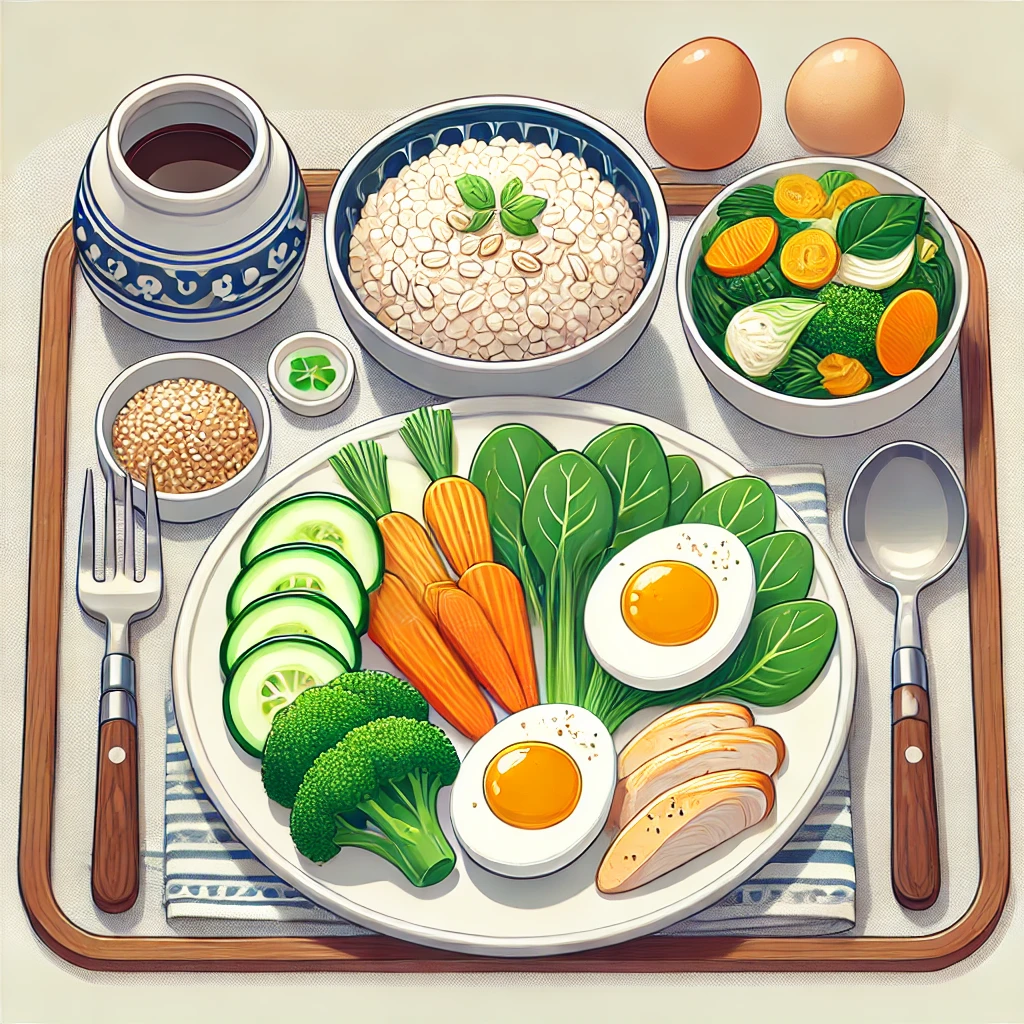 - 고단백식: 계란 2개 + 귀리죽 or 닭가슴살 샐러드